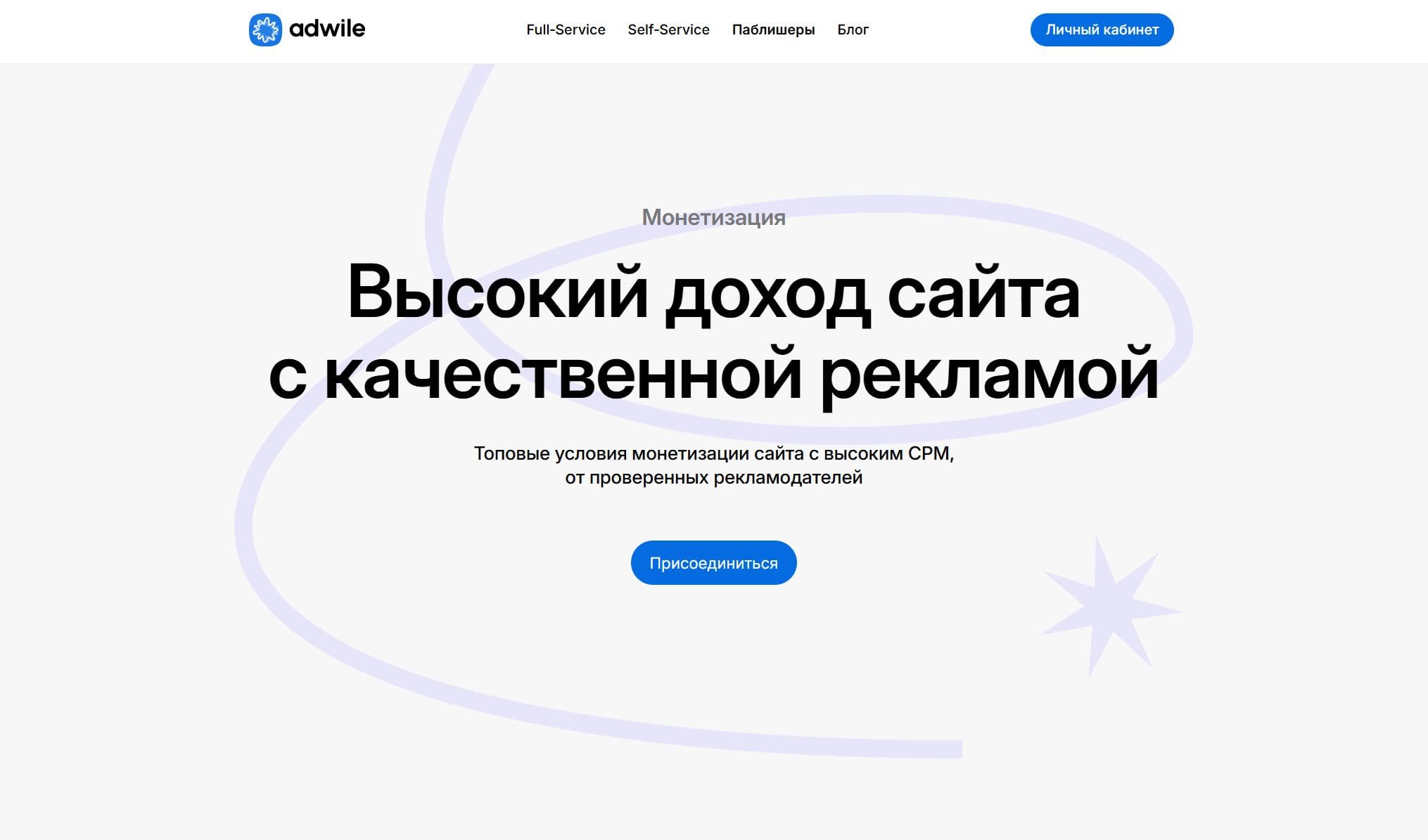 Adwile- Платформа для управления интернет-рекламой, которая помогает издателям монетизировать свои сайты. Высокий CPM, полный филл-рейт и соответствие требованиям АРИР. Также есть возможность выбора различных форматов и способов интеграции для оптимизации процесса монетизации.