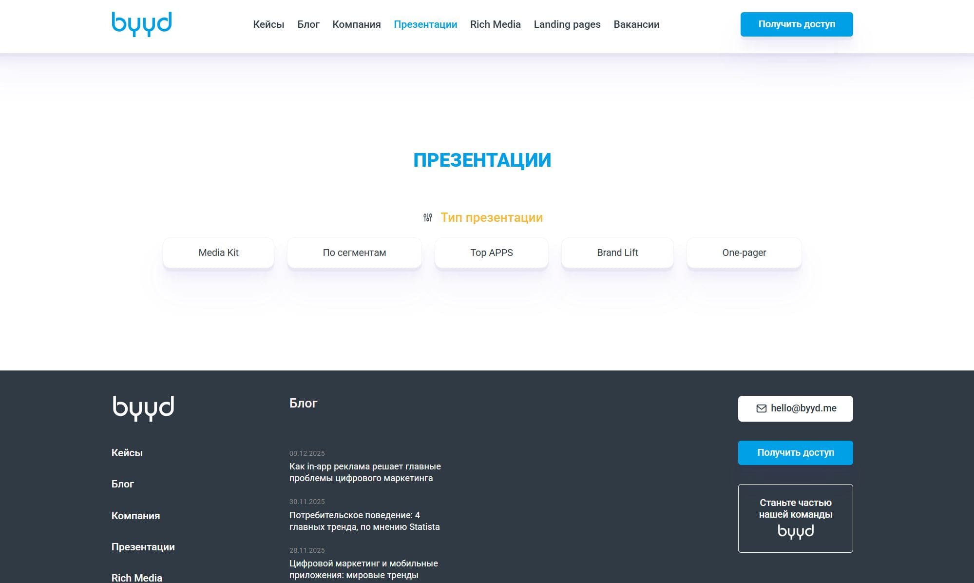 BYYD- мобильная рекламная платформа, которая даёт возможность закупать рекламный трафик на смартфонах и планшетах. Глобальные показатели аудитории, такие как количество уникальных пользователей и время, проведённое в приложениях. Приведены примеры детальной информации о пользователях, включая их пол, возраст, местоположение и интересы.