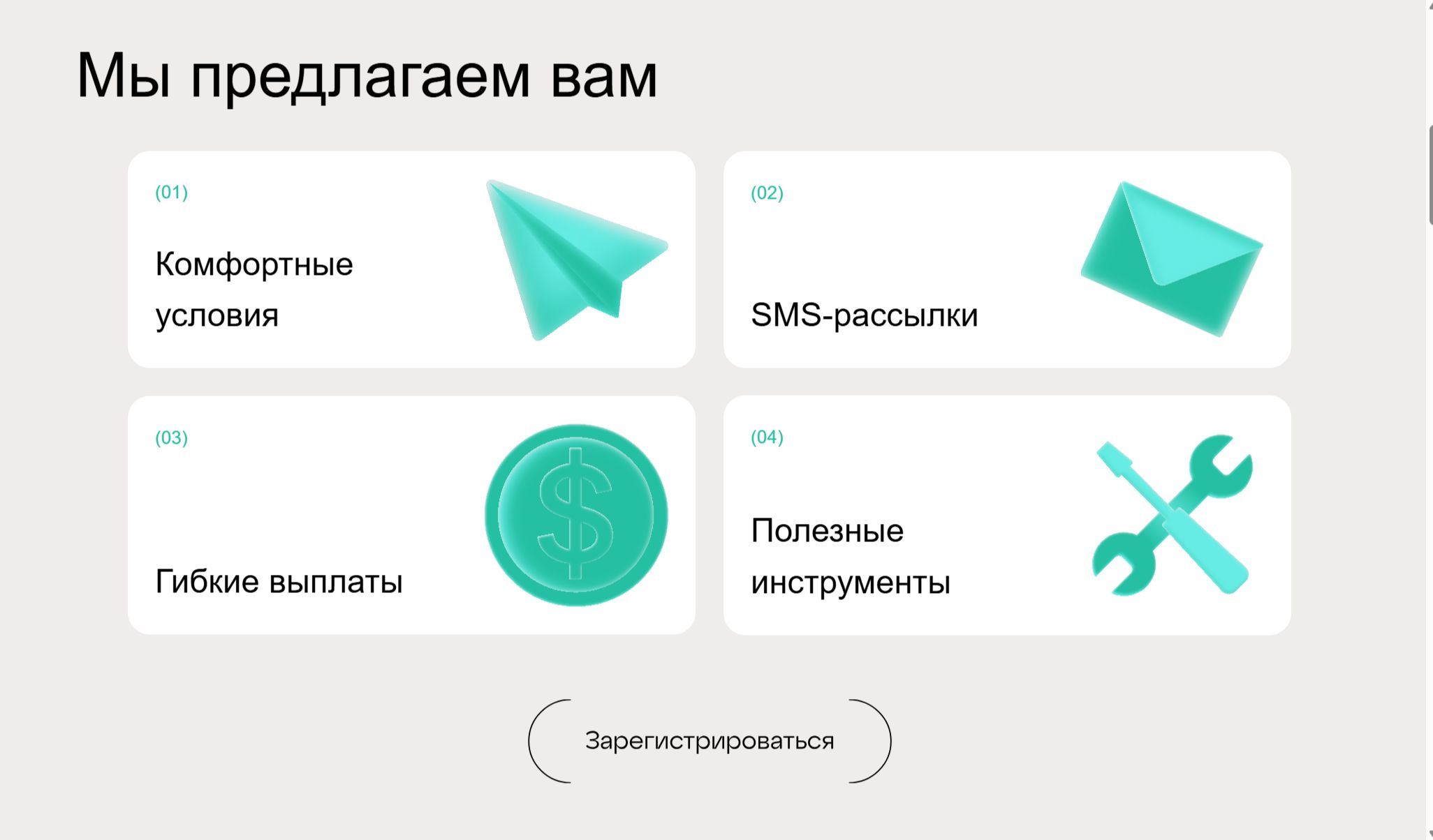 CPA-сеть, работающая в финансовой вертикали. Здесь предлагаются комфортные условия для партнёров, включая SMS-рассылки, гибкие выплаты и полезные инструменты. Функционал платформы позволяет настраивать рекламные предложения с использованием уникальных маркетинговых правил, собирать подробные данные о посетителях для аналитики и обеспечивать масштабирование под различные нагрузки. Статистика в реальном времени предоставляет детальную оценку рекламных кампаний и финансовую сводку. Интеграция с внешними сервисами позволяет успешно сотрудничать с крупными рекламодателями, площадками и вебмастерами. Тарифы предлагаются индивидуально, с возможностью выбора оплаты за нужные действия и регулирования ставки.