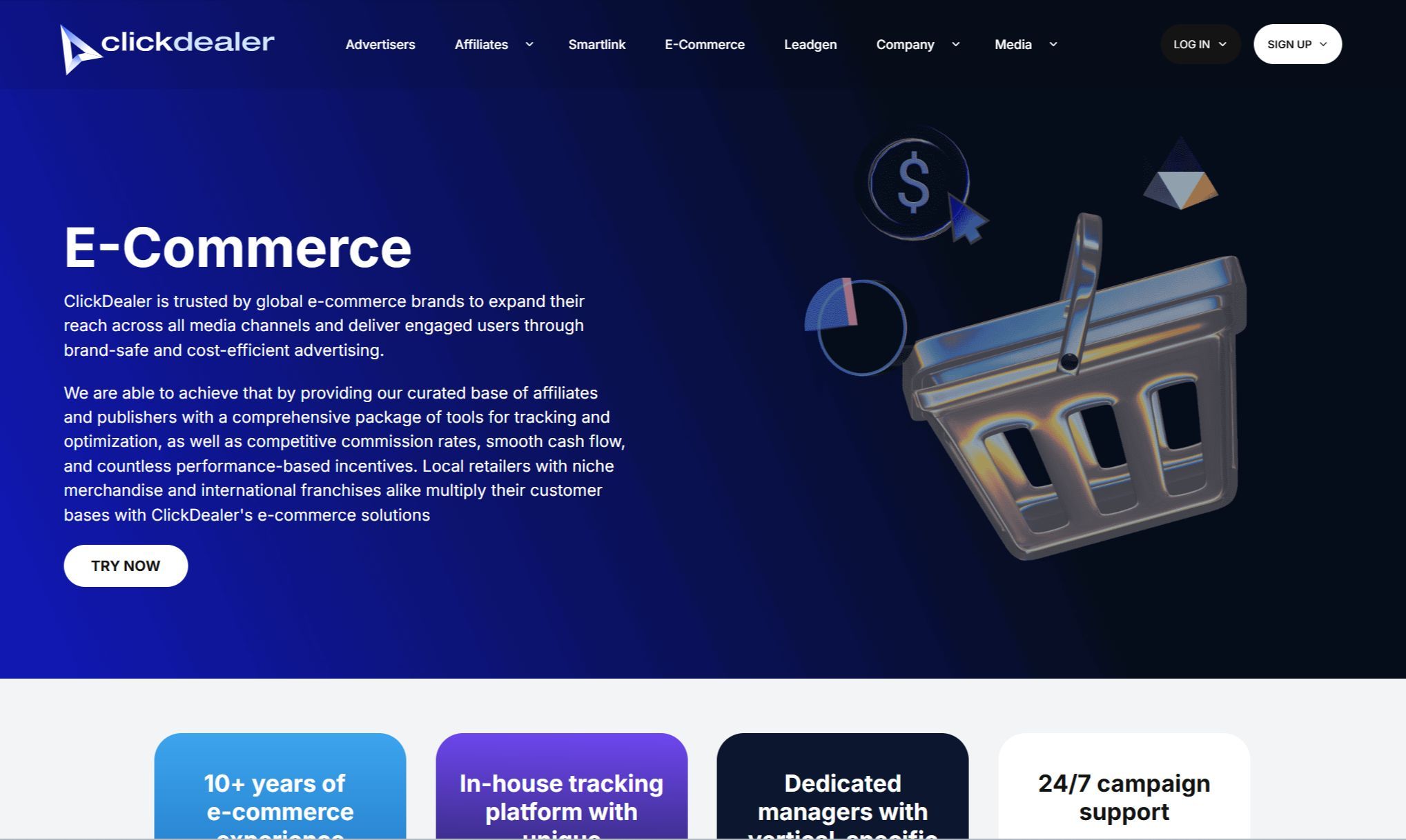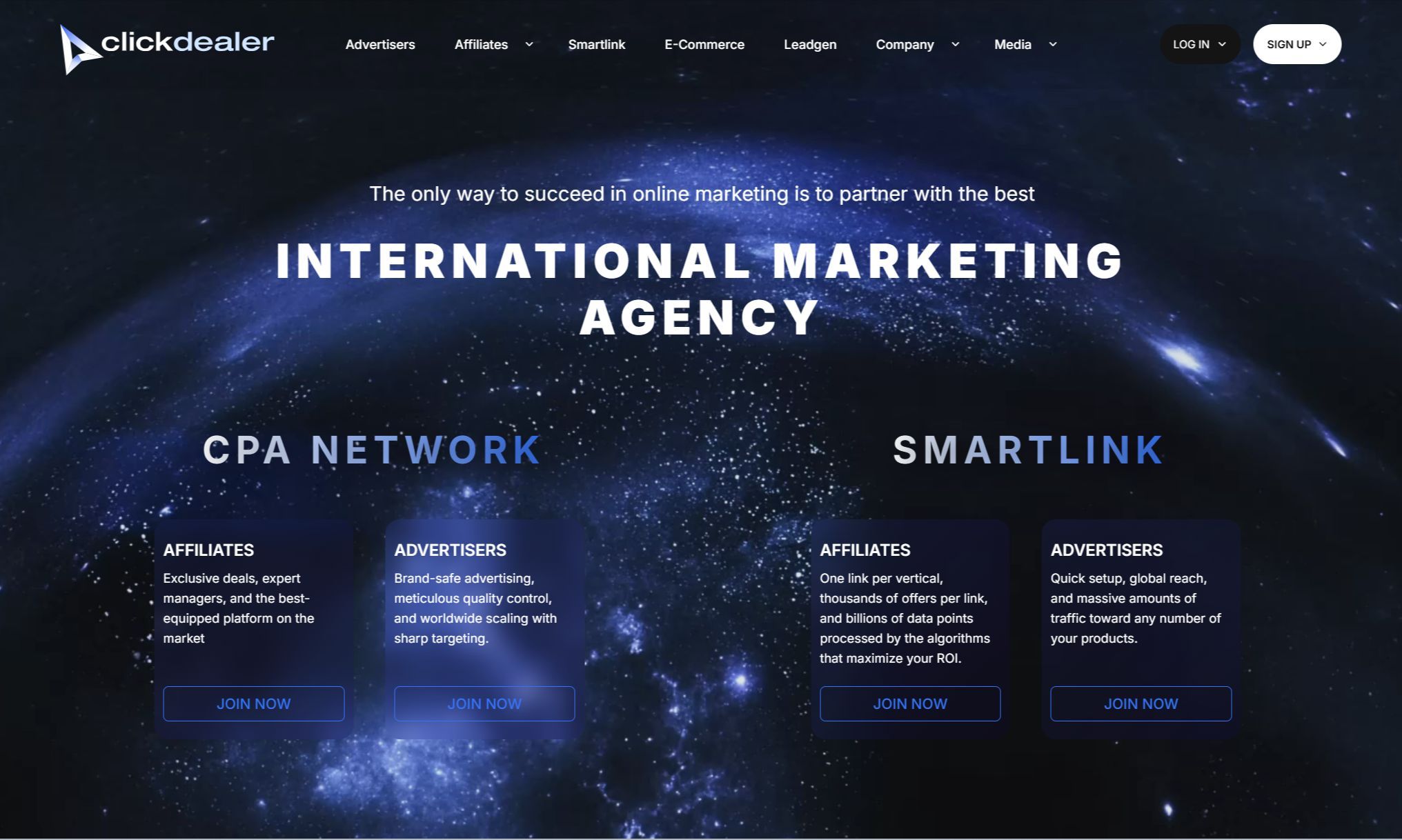 CPA- сеть охватывает свыше 180 стран и предлагает огромное обилие уникальных офферов. Каждый из них относится к одной из 18 вертикалей. При этом, ClickDealer стремится предоставить наиболее удобные и выгодные условиях для их использования веб-мастерам. Регулярные бонусы по партнерской программе, квалифицированная и оперативная техподдержка, большой ассортимент платежных методов. В ассортименте ClickDealer доступно свыше 12 тысяч офферов. Большинство из них эксклюзивные, то есть встретить такие можно только в этой СРА-сети. Компания поддерживает исключительно легальные источники трафика.