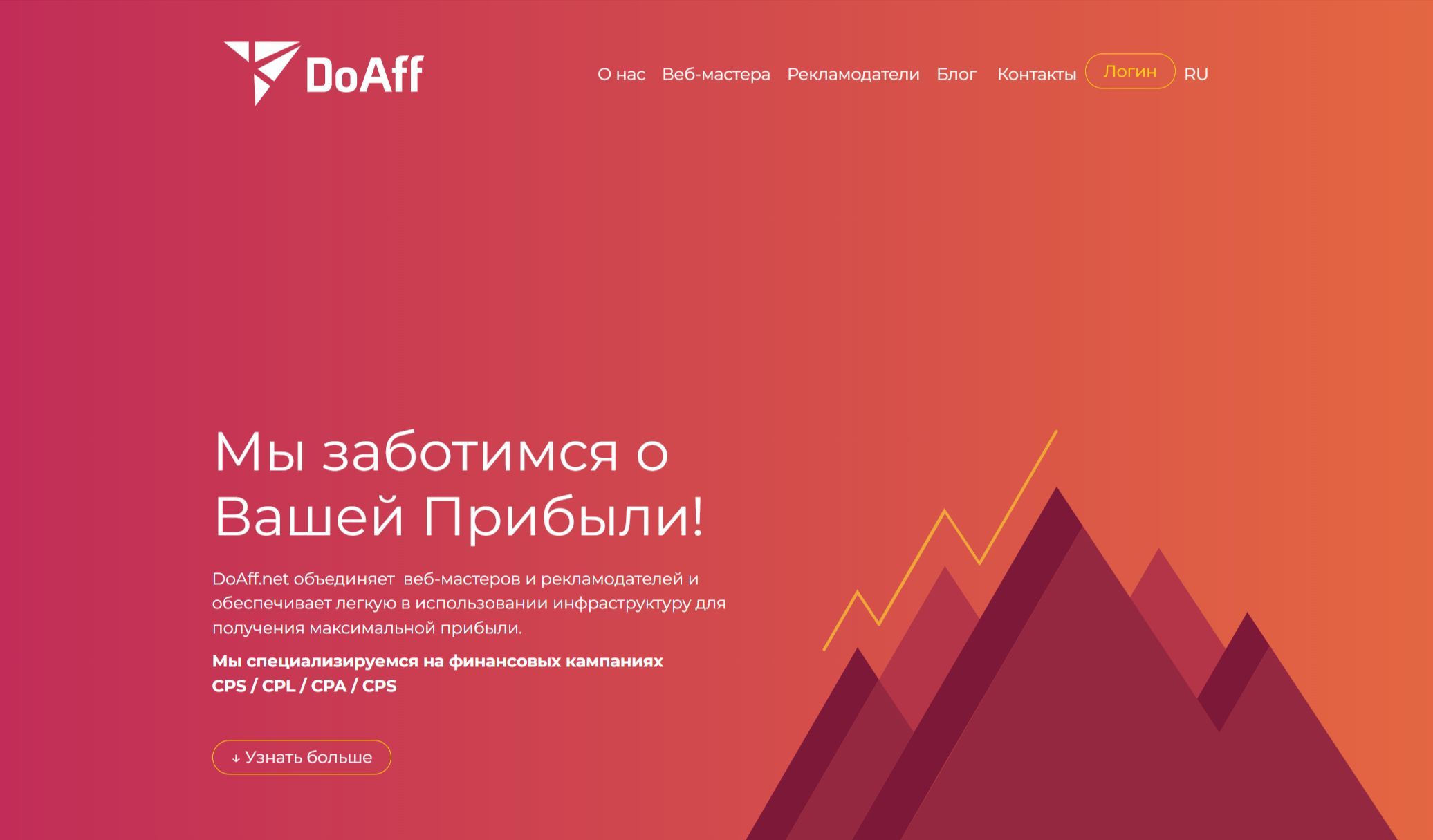 Платформа, объединяющая веб-мастеров и рекламодателей для совместной работы над финансовыми кампаниями по моделям CPS, CPL, CPA. Платформа предлагает работу только с прямыми и in-house офферами, а также гарантирует индивидуальный подход к каждому партнёру для обеспечения качественного трафика. Опыт работы в партнёрском маркетинге с 2011 года и присутствие в более чем 60 странах делают платформу надёжным выбором для сотрудничества. Веб-мастерам предлагаются эксклюзивные офферы в сферах Finance & Nutra, а рекламодателям — тщательное отслеживание и поддержка для достижения наилучших результатов.