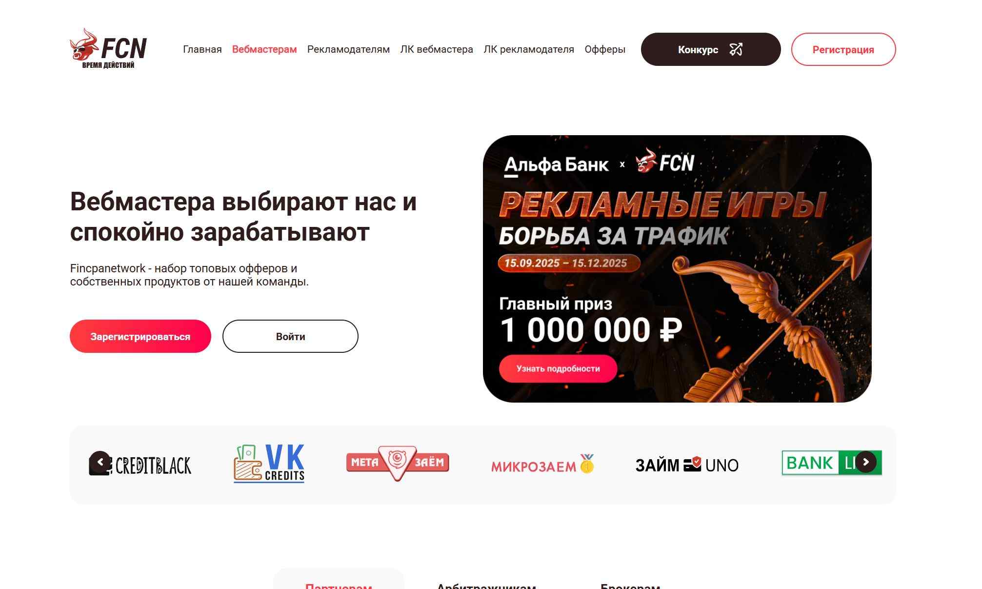 Партнёрская программа с финансовыми офферами.