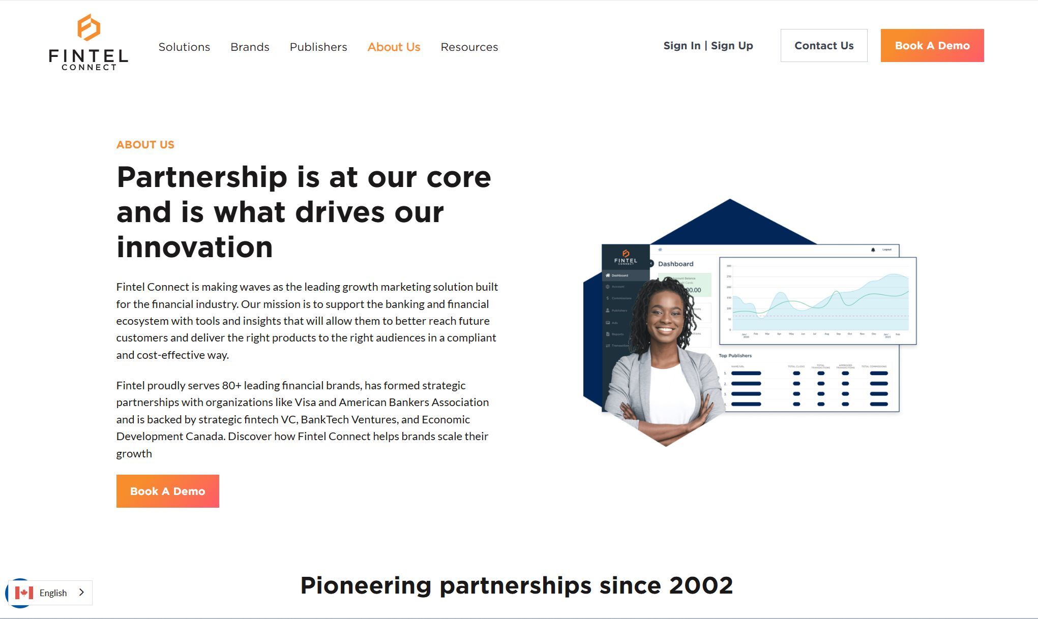 Fintel Connect — это ведущая универсальная платформа для партнерского маркетинга, созданная специально для финтех-компаний и банков. С Fintel финансовые бренды получают все необходимое для масштабирования привлечения клиентов с помощью партнерского маркетинга. В настоящее время компания работает более чем с 90 финтех-компаниями, банками по всей Северной Америке, включая Ramp, BMO и Live Oak Bank.