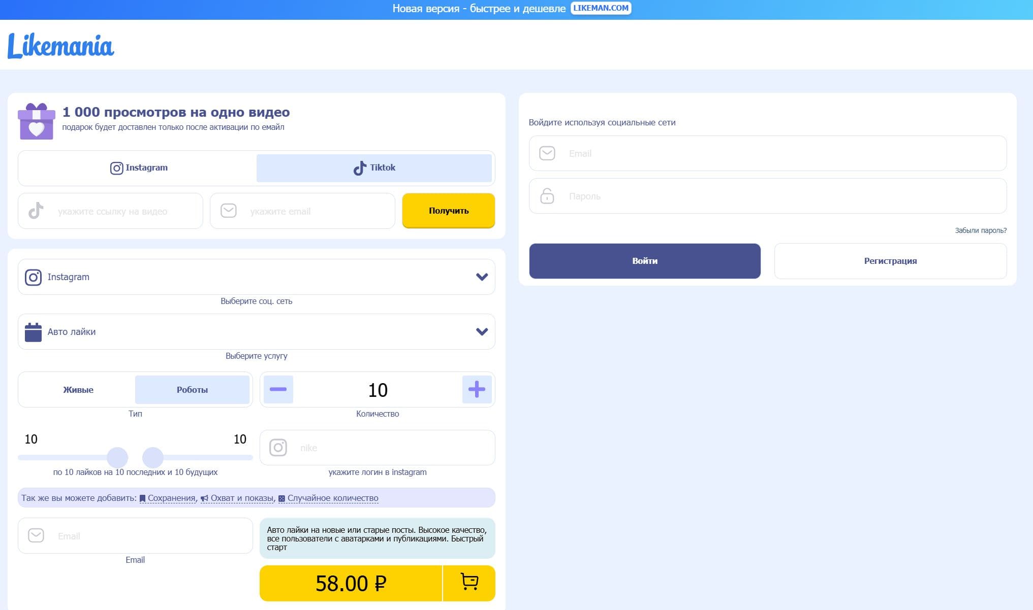 Сервис предлагает инструменты для активного продвижения в социальных сетях — от лайков и комментариев до просмотров видео. Пользователи могут выбирать между «живыми» подписчиками и ботами. В отзывах встречаются как положительные комментарии о скорости работы и удобстве интерфейса, так и негативные замечания о качестве услуг и проблемах с выполнением заказов.