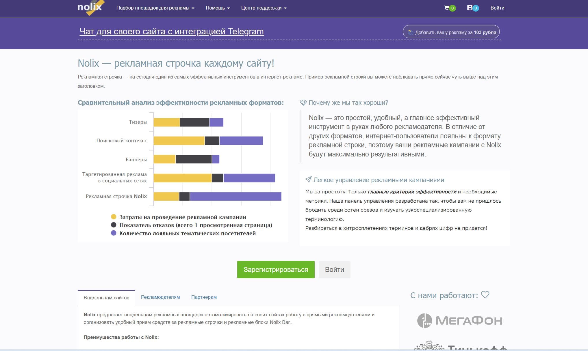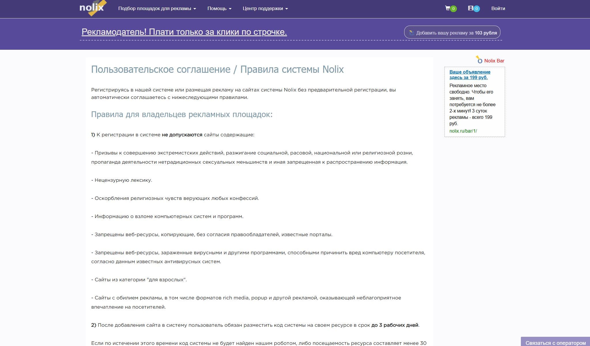 Nolix- рекламный сервис, который предлагает владельцам сайтов возможность размещать рекламные строки и блоки Nolix Bar. Преимущества работы с сервисом, включая высокий процент от стоимости размещения, возможность премодерации и минимальные суммы к выплате. Т