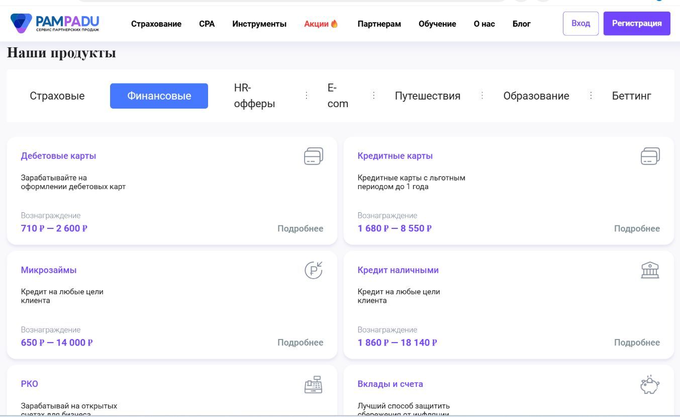 Платформа предоставляет возможность зарабатывать онлайн агентам, брокерам, владельцам бизнеса, вебмастерам и другим пользователям. Здесь можно получать комиссионное вознаграждение за продажу и оформление страховых полисов, финансовых продуктов, закрытие массовых вакансий и выполнение целевых действий. Платформа предлагает моментальные и прозрачные выплаты, эксклюзивные ставки и продукты, а также инструменты для работы под любой запрос: виджеты, витрины, API. Обучение, поддержка и возможность развития агентской сети делают платформу привлекательной для пользователей с разным опытом работы.