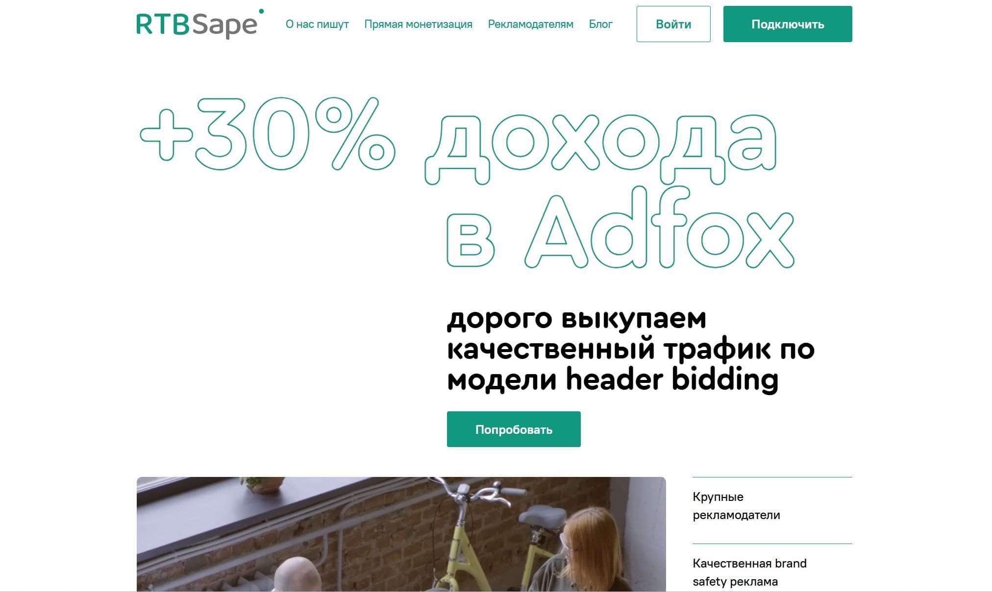 RTB.Sape- это маркетинговая платформа по продаже рекламы по типу аукциона. Монетизация за счет размещения рекламы на своем сайте, либо другом источнике от партнеров.