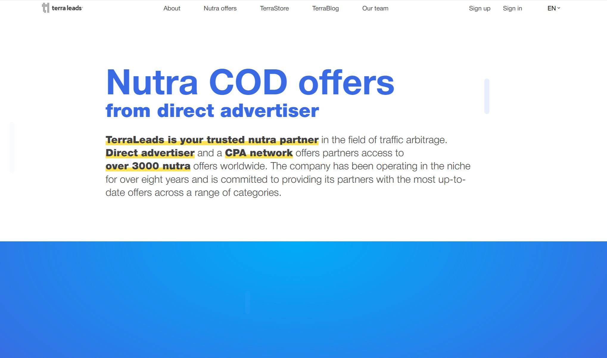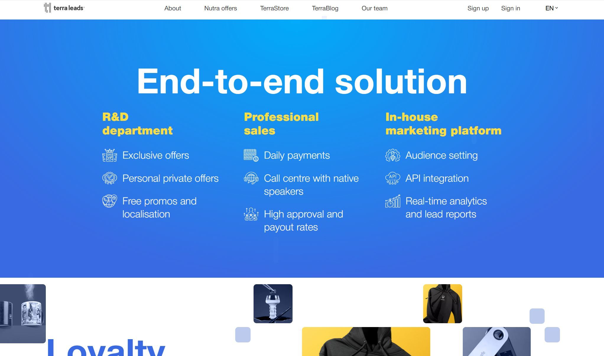 Партнёрская сеть имеет собственную маркетинговую платформу с настройкой аудитории, интеграцией с API и аналитикой в реальном времени. Платформа также предлагает ежедневные платежи, высокие показатели одобрения и выплат, а также эксклюзивные предложения, не представленные в других сетях.
