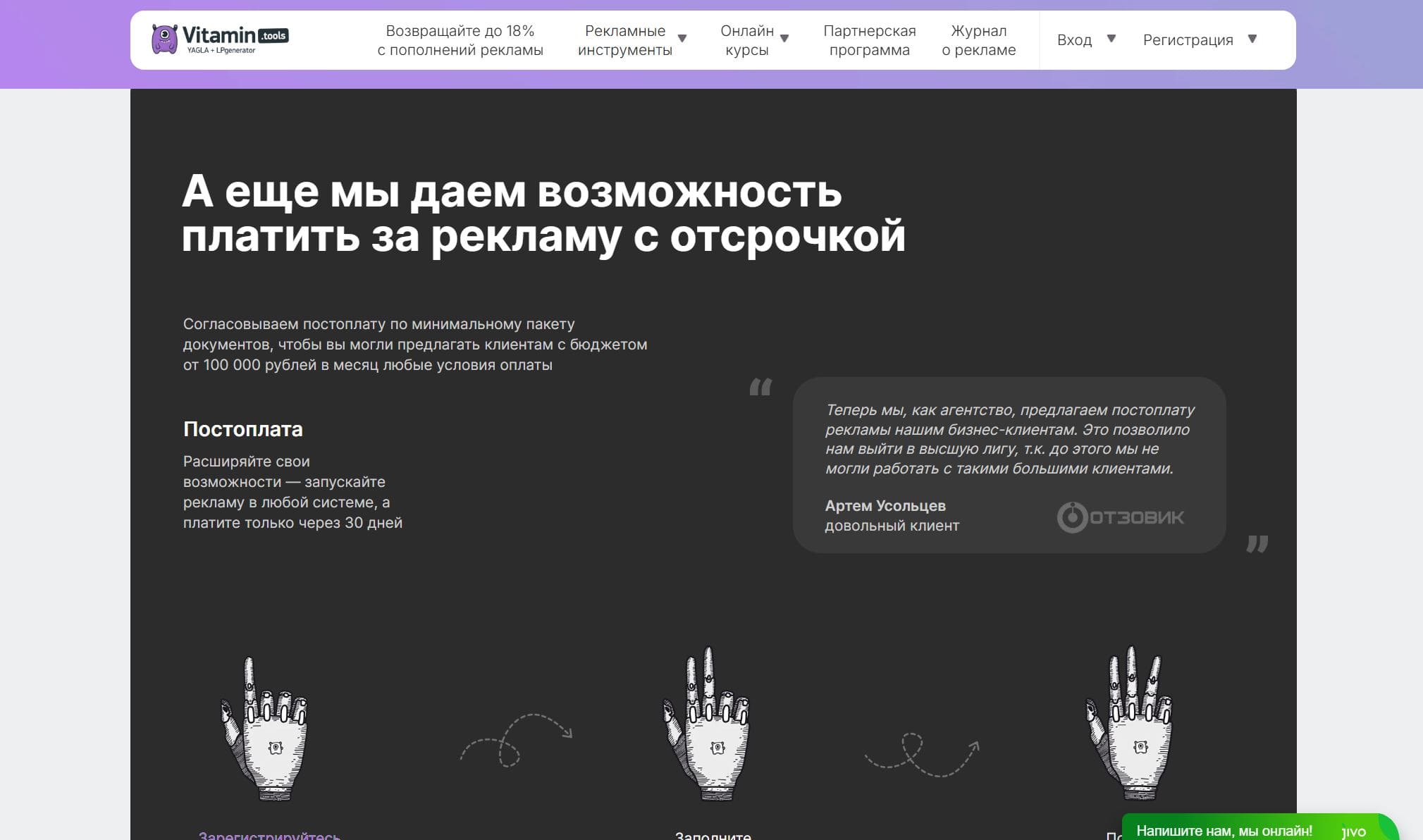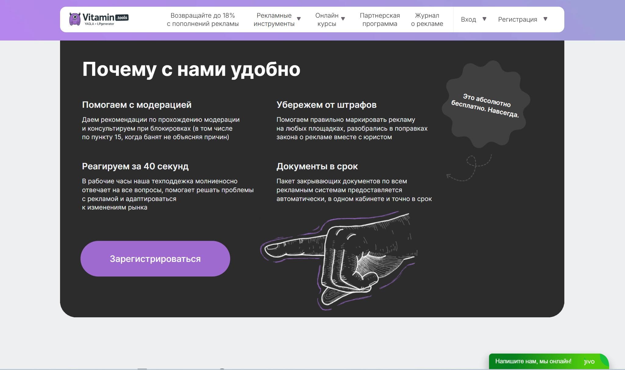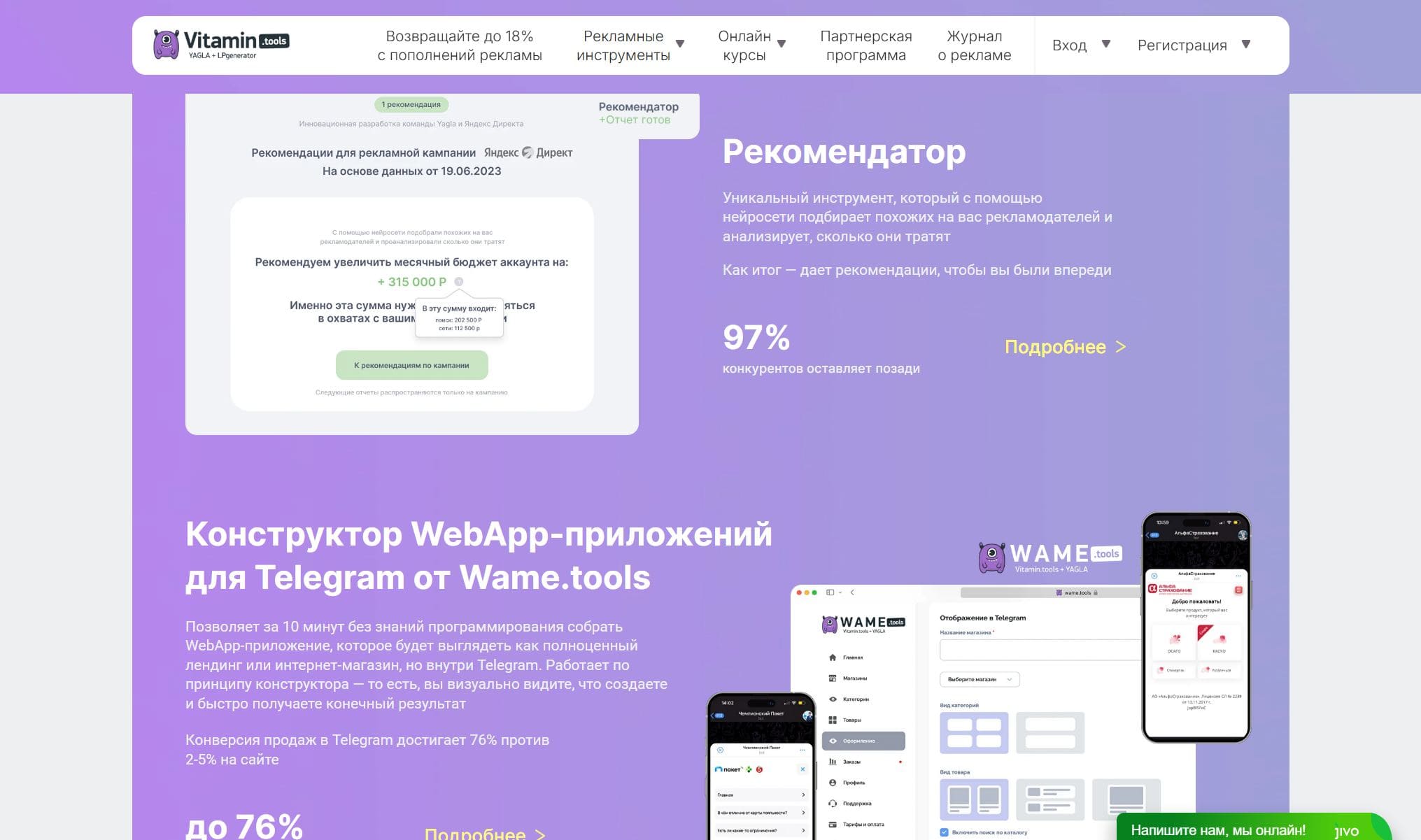 Российская рекламная экосистема, созданная для маркетологов, предпринимателей, агентств. Различные инструменты для рекламы, включая гиперсегментацию, A/B тестирование и конструктор лендингов. Также предлагают обучающие курсы по маркетингу и возможность получения бонусов от партнёров